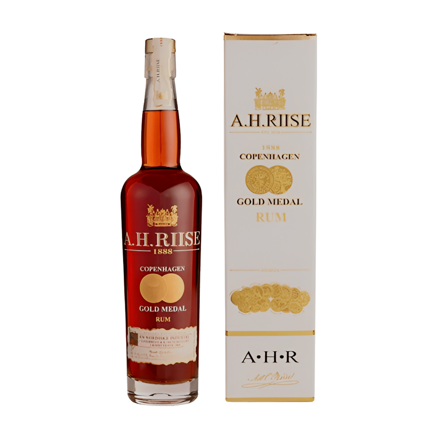 Wineguy har fundet A H Riise Copenhagen Gold Medal Rom hos Winther Vin i kategorien Rom Spiritus. I 1888 deltog A.H. Riise på den Nordiske Industri-Landbrugs & Kunstudstilling i København med sin rom, der blandt andet fik en guldmedajle for "Ypperlighed". Udgivelsen af denne let søde 1888 Gold Medal Edition Rom var med sin fyldige og runde smag med ti